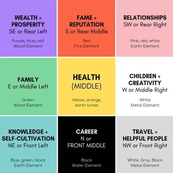 When thinking about what you would like this zodiacal new year to manifest, enhance, or focus on, follow the feng shui bagua map to encourage your ideas.